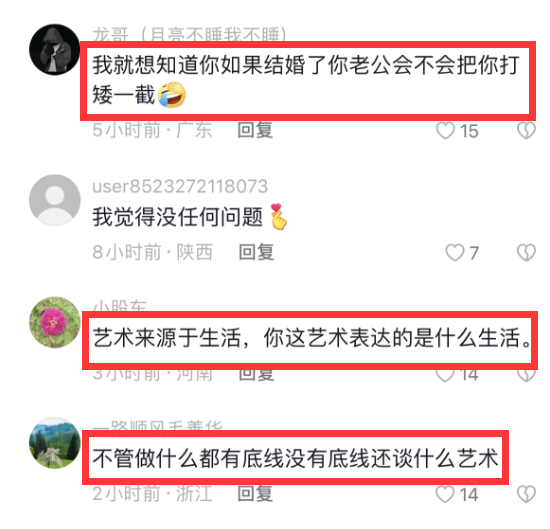 还有网友更是表示艺术创作本来是供大家欣赏的,大家无法接受的那就不叫艺术,况且艺术也有所谓的底线,否则就变成了不雅,而这些动作设计显然有悖于传统道德观念。