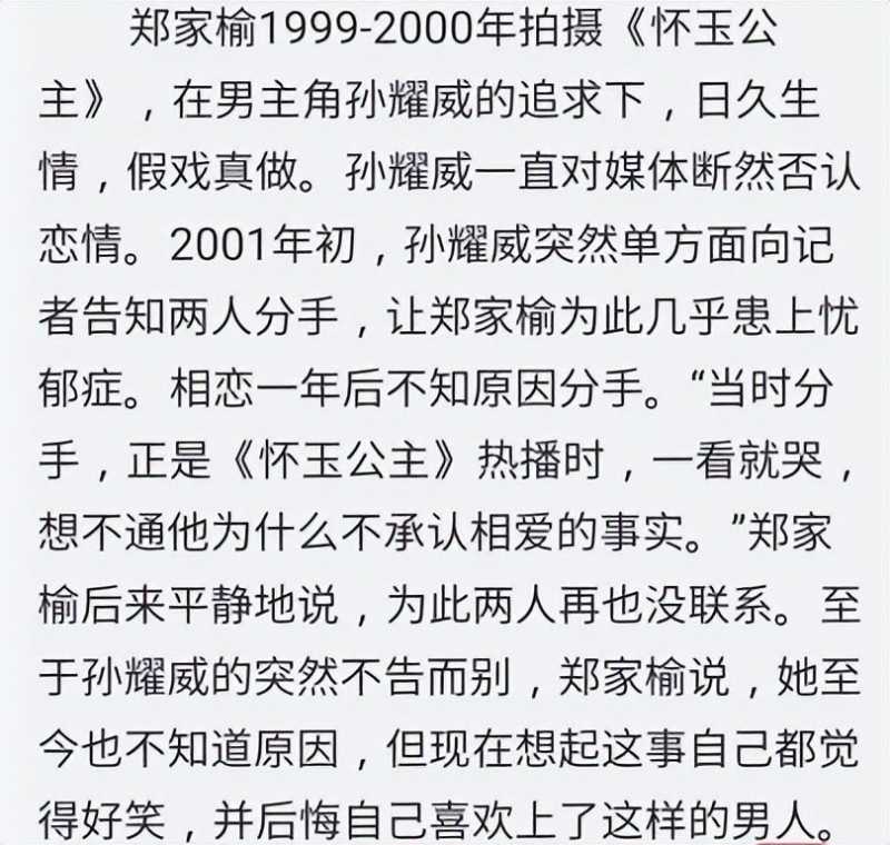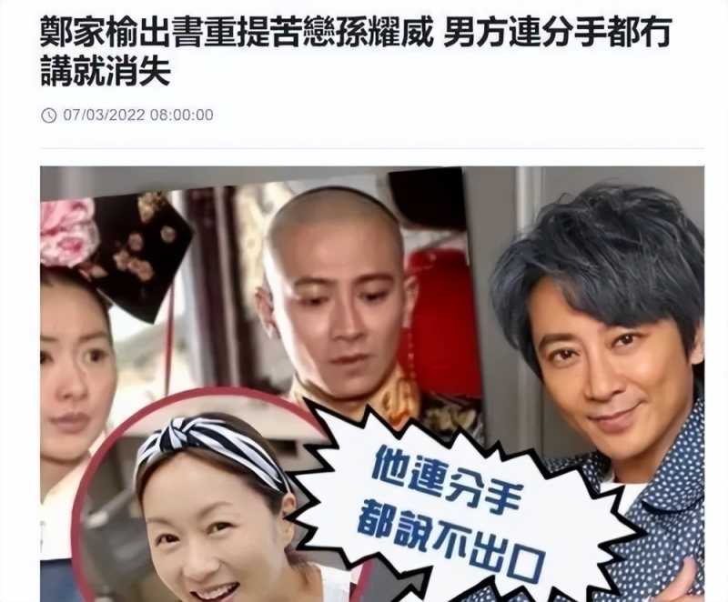 不过后来,郑家榆说分手是因为,双方年龄相差比较大,孙耀威当时年纪小不懂得如何处理这段感情,感觉压力很大。