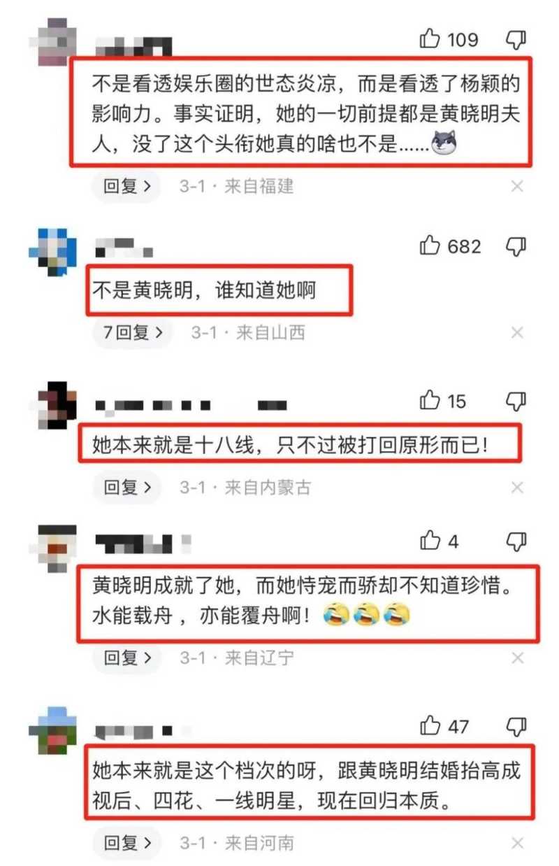 娱乐圈的“人走茶凉”,在杨颖身上体现得淋漓尽致,不过走的是“贵人”黄晓明,“凉”的是依靠黄晓明,自己实力欠缺的杨颖。