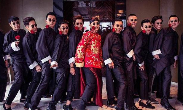 何炅、谢娜担任主持,王中军是证婚人,伴娘团有李冰冰、倪妮、何超盈等人,连豪门阔少王思聪都来当了伴郎。