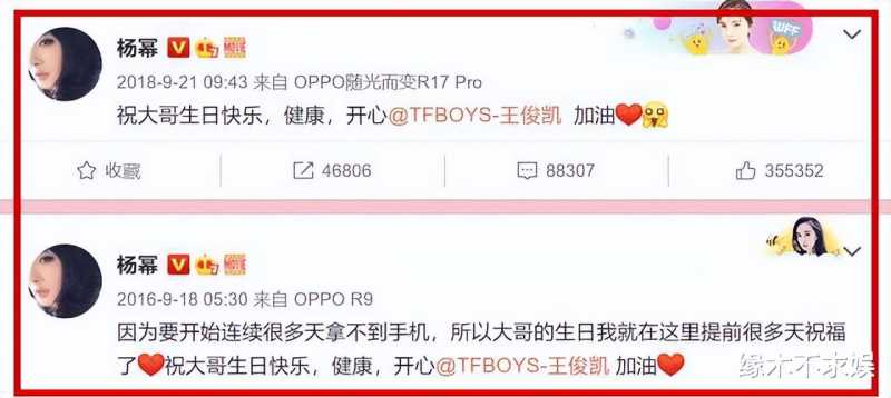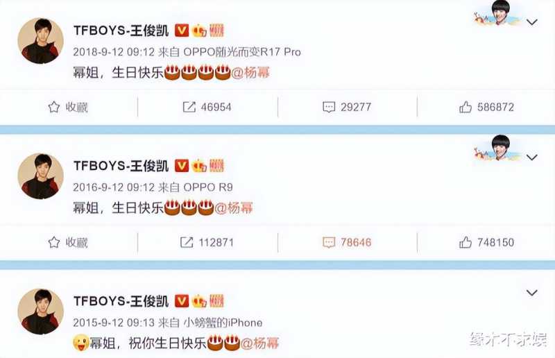 这些年两人虽然没有合作,但互动却不在少数,譬如杨幂生日,身为迷弟的王俊凯常常送上祝福——