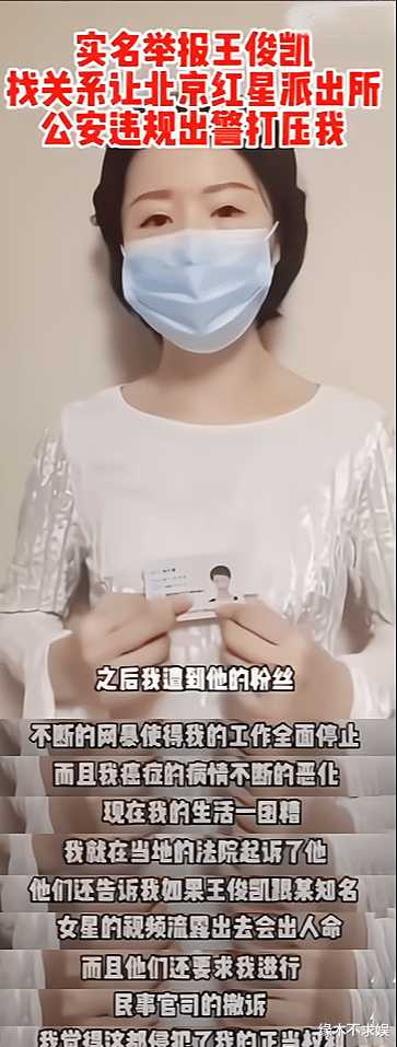 该女子也透露之所以要实名举报王俊凯,一是因为自己遭到王俊凯粉丝的网暴,工作已经全面停止;二是自己的癌症也不断恶化,生活一团糟。或许在万般无奈之下,她才决定“鱼死网破”,争取一个说法。