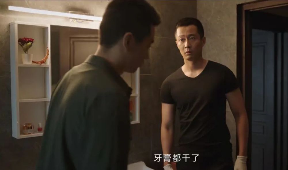 除了眼神到位,作为一名刑警,陈晓的动作戏也很流畅,各种跑跳戏份,身手矫捷。他还观察入微,调查现场时,小到连牙膏都不放过,根据牙膏是干的,推测被害人长期没有在家居住。