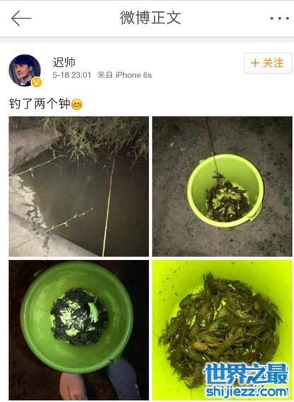 巧合的是凌晨12点时分,李璐茜也在其个人认证微博上发博“夜钓咪咪龙虾仔”,也配图了,都是绿颜色的盛虾的桶。所以可以看出是迟帅和李璐茜两人一起亲密的钓龙虾了。真相大白了,迟帅现在虽然没结婚,但也并不是单身状态,而是有个美丽的女朋友。