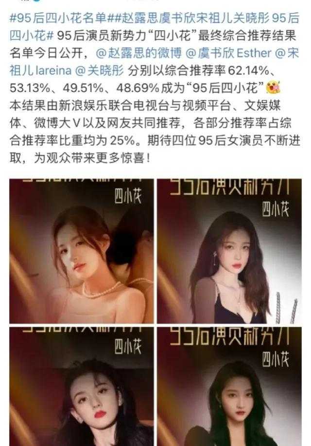目前资源比较好的95花,也就赵露思、虞书欣、关晓彤、宋祖儿了。