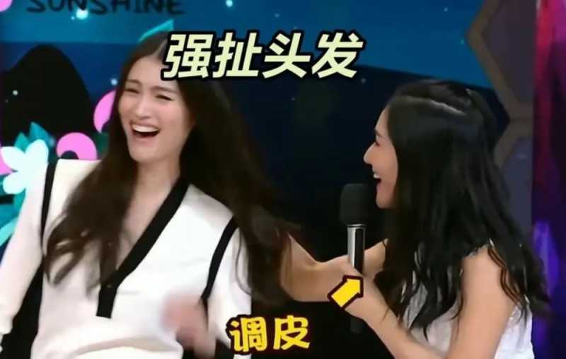 可能是为了看看超模到底“特别”在哪里,谢娜甚至摸着完又开始拽何穗的头发,何穗露出难为情的表情,看起来像是被扯痛了,谢娜还哈哈大笑。