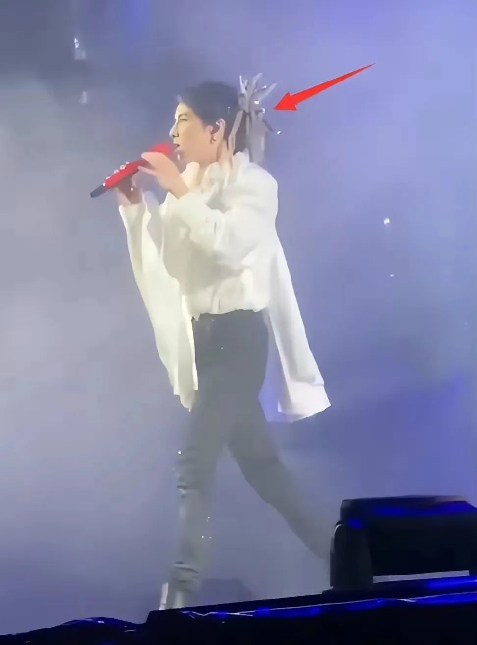 其实华晨宇的造型怪异也不是一两天了,他总是让人觉得时尚也太难理解了,比如他一件飘逸的白衬衫,设计得非常复杂,左右都有披风的装饰,还不如一件普通清爽的白衬衫,他在后脑勺上戴了一个大型的有些夸张的头饰,配上手舞足蹈的他,气质更加癫狂了。