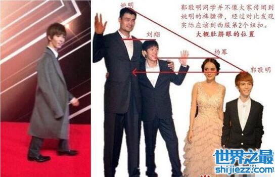 可能很多人都听说过这么一句话吧:“姚明六岁的女儿身高直逼郭敬明。”其实说真的,这并不是一句玩笑话,因为姚明的女儿在六岁时身高就有150cm左右了,而郭敬明真实身高只有147cm。虽然说郭敬明身高肯定不是世界上最矮的人,但应该是公众人物中最矮的了吧。