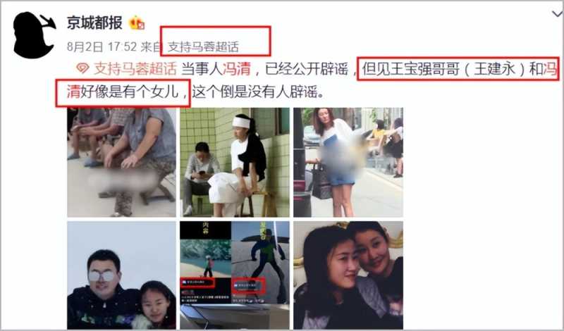 而所谓的冯清和王建永发布同样内容,完全可以看做冯清、王宝强、王建永等人一起出去游玩。