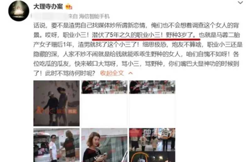 马蓉的好友“晓晓的笔”连发数文讽刺王宝强,称“私生子认祖归宗”、“嫁给王宝强,真的毁一生啊!”