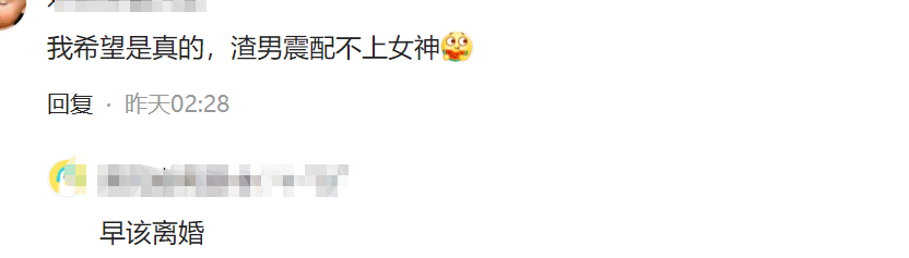 评论区的网友们对于这桩“婚变”几乎是一边倒的支持,有网友觉得周慧敏终于打了一个漂亮的“翻身战”,离开渣男大快人心。