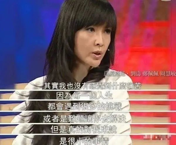 对于和倪震长达数十年的感情,周慧敏的态度是,她并不觉得自己的人生有什么痛苦的地方,因为每一个人的人生都会遇到一些挑战或者难题让你去解决,但对她来说,真的都是小事。