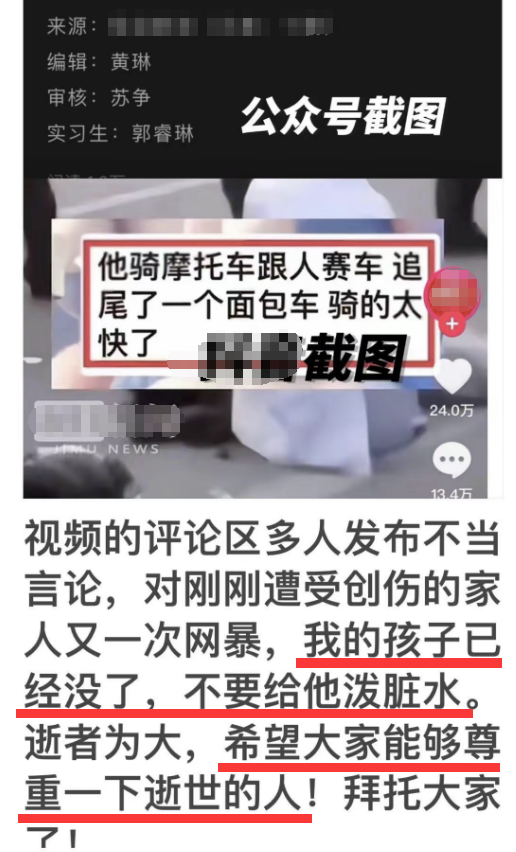 此外,马爸爸也声称网传谣言和配图根本不符,儿子马若松并非因为与他人飙车而引发事故,鉴于外界不少舆论很不友好,让刚刚遭受创伤的一家人都承受了网暴,身为父亲的他也不愿意儿子离世还被人泼脏水,为此希望大家能理性发言,尊重逝者,一番言辞可谓相当诚恳。