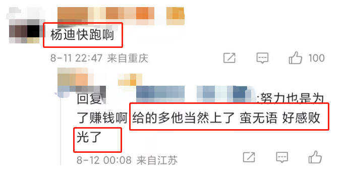 得知这个消息,有网友叫“杨迪快跑”,也有人开始吐槽起杨迪,表示他为了钱和网红录节目,很败好感。