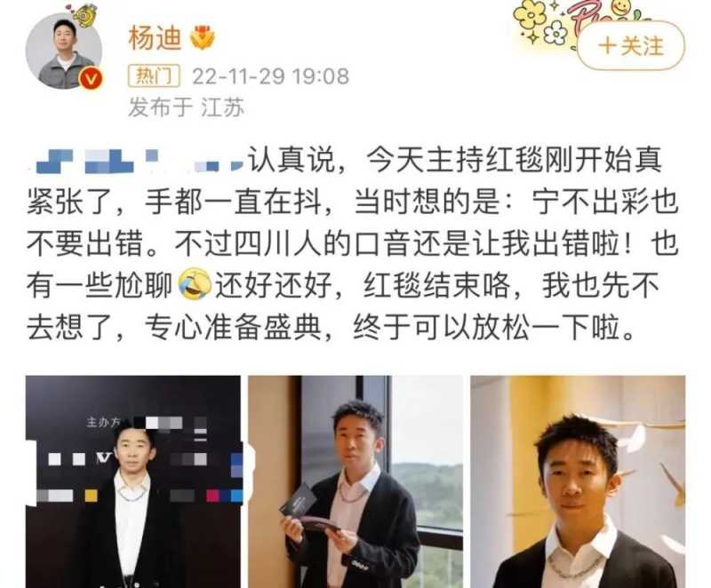 杨迪主持微光盛典,就有些“辜负”大家期望。他全程不离手卡,多次嘴瓢磕磕巴巴,甚至后来还发文道歉。
