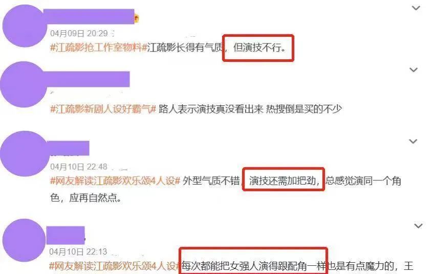 其实,不只是《欢乐颂4》中有这样的情况,自从《三十而已》播出后,在《女士的法则》中江疏影都收到了类似的吐槽,她好像找到了自己的舒适圈,于是不再探究演技,将自己困在了同一个模板里。