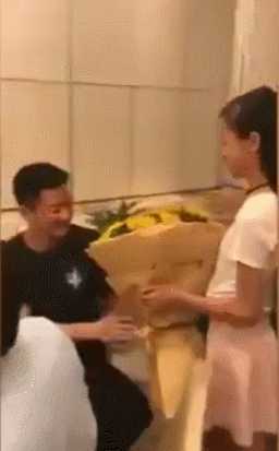接到鲜花的那一刻,吴京感动之余还不忘告诫对方: