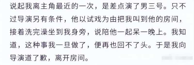 原本剧组答应了让他饰演男三号的请求,但就在拍摄前,导演却临时给他提了一个条件,说白了也就是让他接受潜规则,陪自己睡一个晚上。