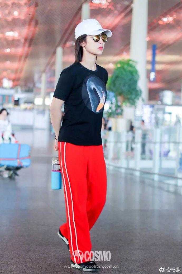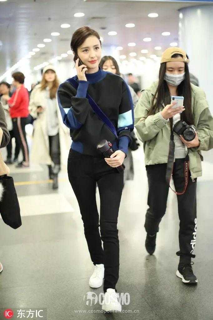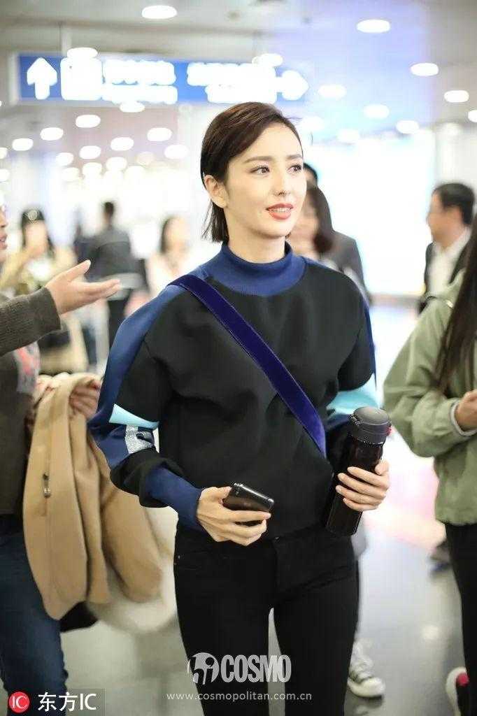 佟丽娅去机场,短发干净清爽,皮肤白皙有光泽,挎了个小包包,看起来青春靓丽。然后握着个保温杯……