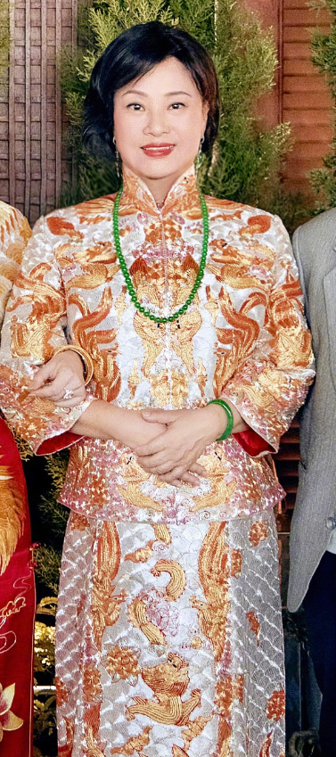 何超莲的妈妈三太陈婉珍整体造型十分高调,有网友分析三太身上的这条龙凤褂要比何超莲的高一个档次,属于龙凤褂中比较贵重的级别。