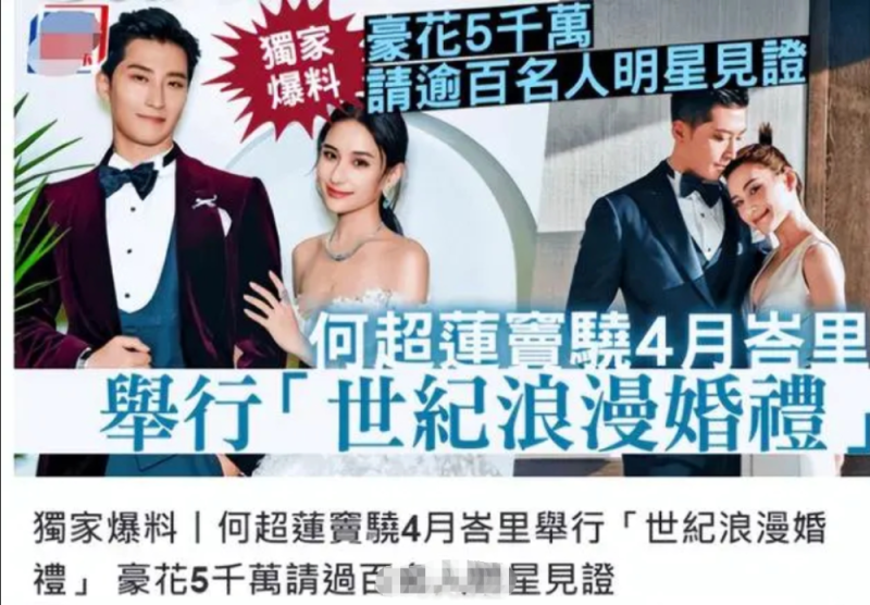 有媒体报道,这次何超莲和窦骁的婚礼估计花了5000万左右,号称是“世纪浪漫婚礼”,请了邓紫棋,钟欣潼,蔡卓妍三大女星当伴娘。