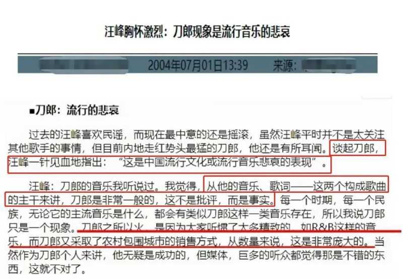 除此之外,汪峰曾经还有些“看不起”刀郎。