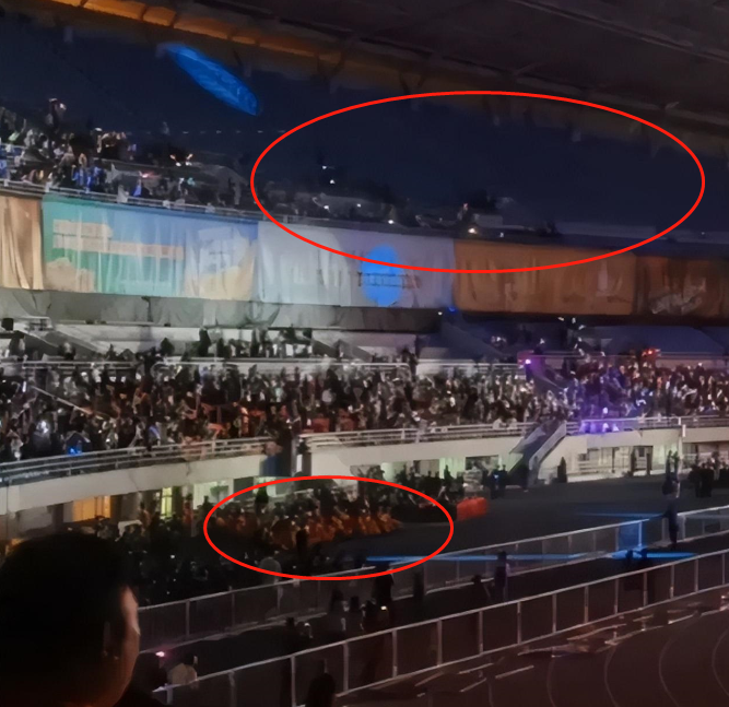 据传体育场内空空荡荡,最后十几分钟甚至免费放人进去,要是演唱会满座,自然不会出现放人进去增加气氛的状况。