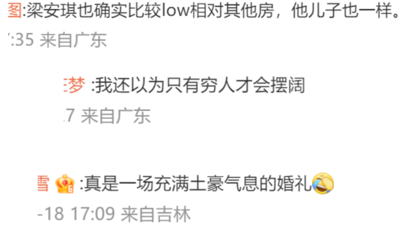 而何超盈的婚礼则被认为有几分土气和显摆,更像是“暴发户”。