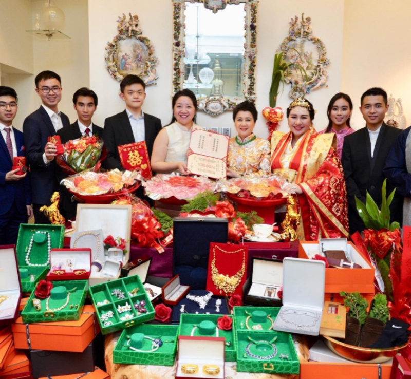 长女何超盈当年的婚礼被拉出来和何超莲的婚礼做了对比,当年何超盈的婚礼上,主打就是“壕”,摆满了整个屋子的“过大礼”经典场面将豪门的豪气展现得淋漓尽致。
