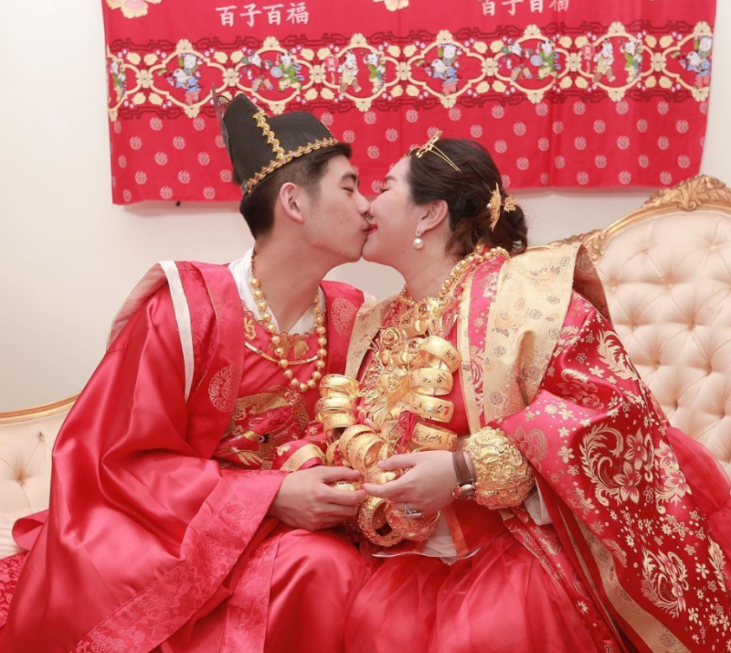 何超盈结婚时身上也挂满了黄金饰品,四太梁安琪用绳子串起来的十几个金手镯十分惊艳。