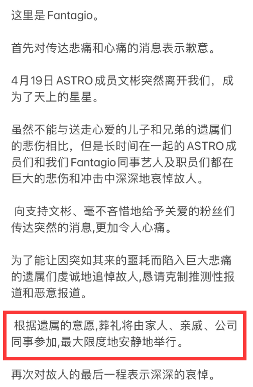25岁韩国歌手文彬去世,公司发讣告证实,公布遗嘱及葬礼安排