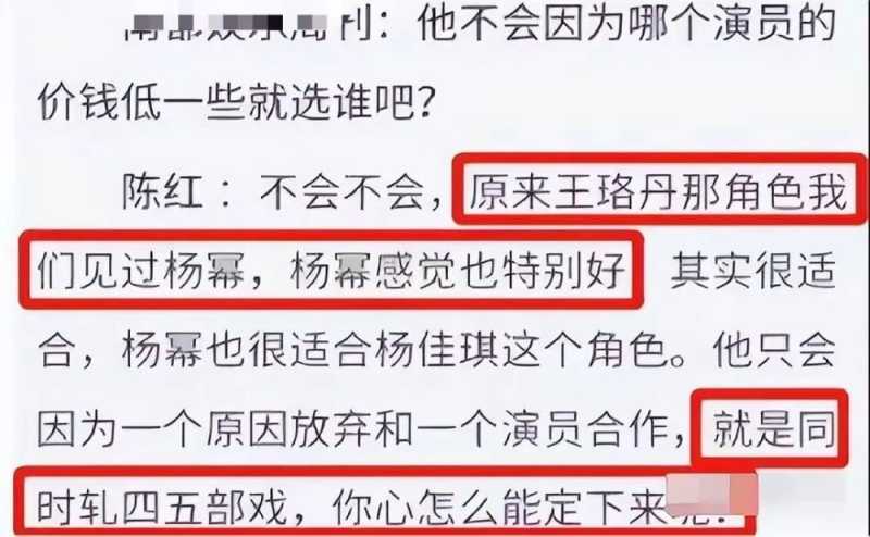 电影上映时,陈红接受采访还内涵了杨幂的轧戏行为。