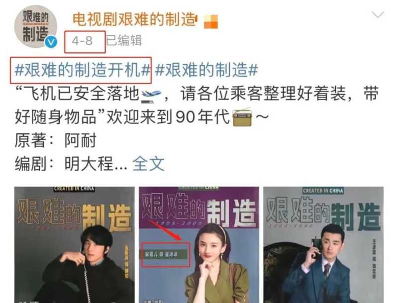 这就被细心网友发现了不对劲的地方,因为他们的造型和4月8日正午阳光官宣开机的新剧《艰难的制造》很相似。