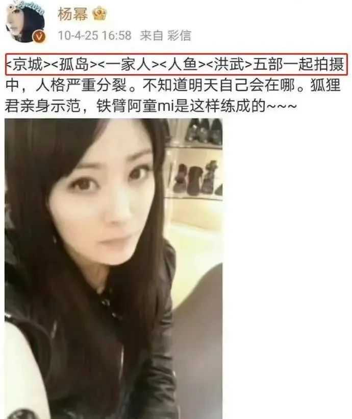 轧戏本来在影视圈就不是新鲜事,除了小花们,还有不少演员轧戏。早在2010年,杨幂就发文自豪地表示自己五部剧一起拍。