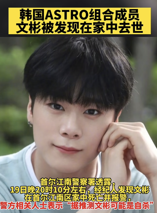4月19日,韩娱圈惊传一则噩耗,韩国人气偶像团体ASTRO成员文彬被发现死于家中,随后警方及公司证实消息属实,据悉,文彬前不久刚迎来自己的25岁生日,如此的美好生命却这样戛然而止,让太多人感到悲痛与哀叹。