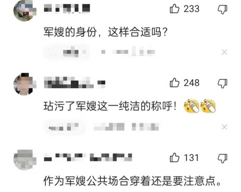 就是这么一组简单的照片,她却被许多人骂惨了,因为有人说她身为军嫂,穿成这样不合适,玷污了军嫂的名声。