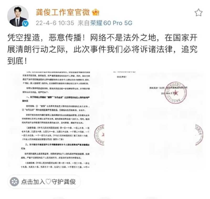 从工作室发的声明来看,回应得很明确,所谓的“白马会所”都是造谣,此事严重损害了龚俊的合法权益,将依法维权。