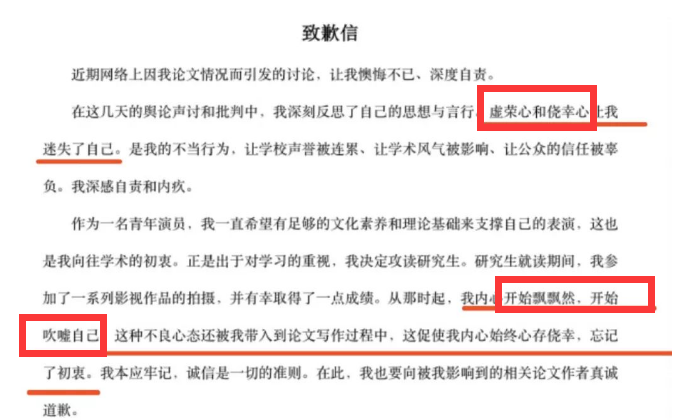 看似用心动情,其实这篇道歉信被拿去查重,复制比例达到20%。