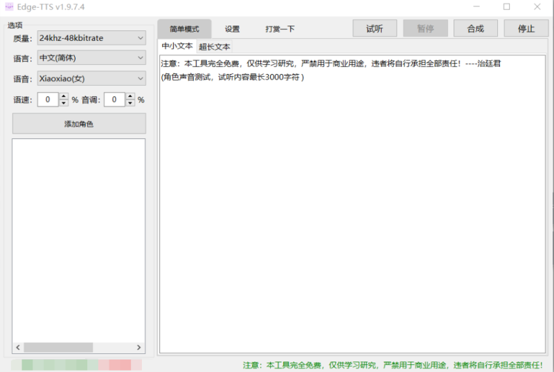 TTSEdge 是一个完全免费的文字转语音和语音合成电脑软件;软件支持 Windows 。