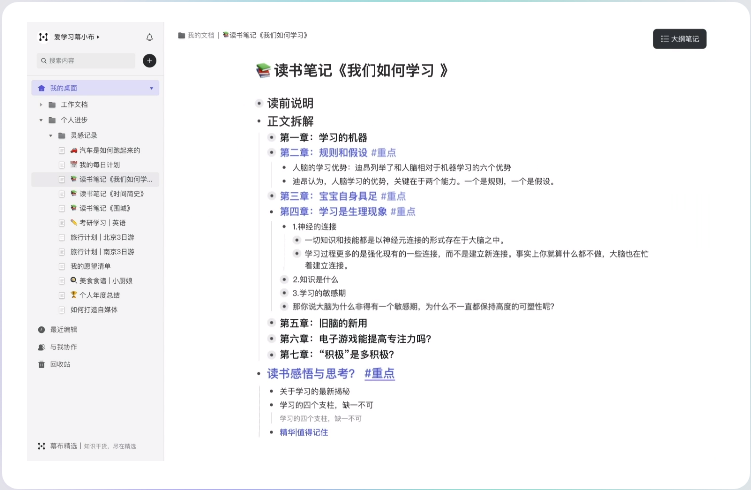 幕布是一款大纲笔记软件,优点在于可以直接在文档里面按照正常记笔记的方式编辑文稿,然后根据层级调整逻辑结构,最后还可以一键转换成思维导图。相比较XMind会更加轻量级,而且支持全平台同步,非常方便。