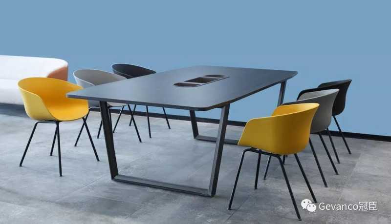 不同风格的洽谈区域办公家具满足不同职员的需求。位于封闭房间内MINI办公家具系列简洁洽谈桌,敞开式的MINI会议桌办公家具,三色拼接现代时尚。