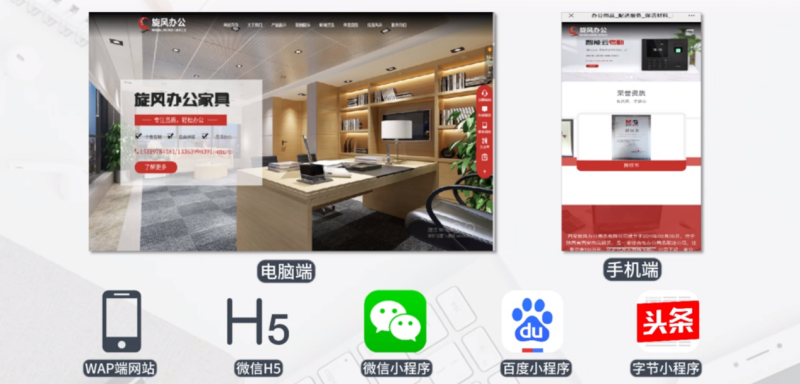 旋风办公运用W云,建立覆盖百度、微信、字节等8个终端的全域数智营销网站。根据行业特性,设计个性化的页面,搭建满足销售性质的营销官网,为之后的全域营销奠定坚实基础。
