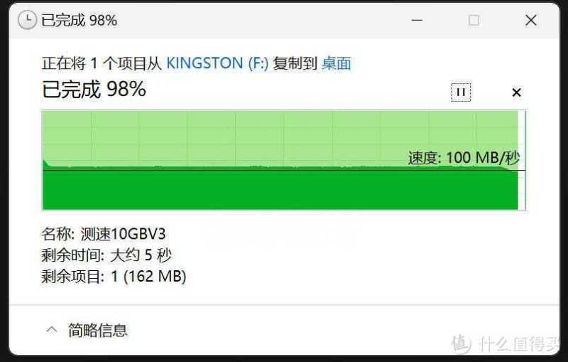 拷贝测试实际拷贝中,10G大文件基本在100MB/s的速度,相当稳定。