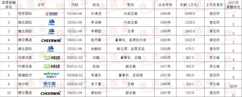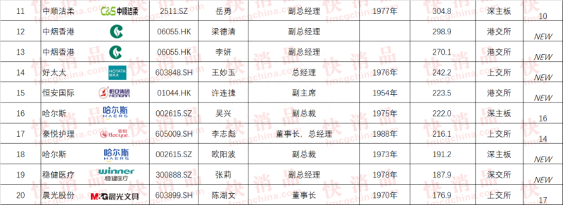 【独家】“2022年中国日用品上市公司TOP20高薪高管”公布