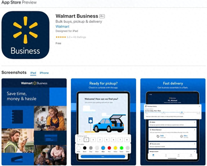 另一方面,沃尔玛推出了新的应用程序,来优化对卖家的服务。今年1月,沃尔玛推出Walmart Business电商购物网站,旨在为中小企业和非营利客户提供支持。而近期,沃尔玛进一步优化提供支持的流程,宣布推出Walmart Business应用程序。