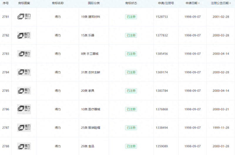 随着品牌的发展,新产品的推出,得力集团也不断申请商标进行布局,商标保护意识值得点赞!