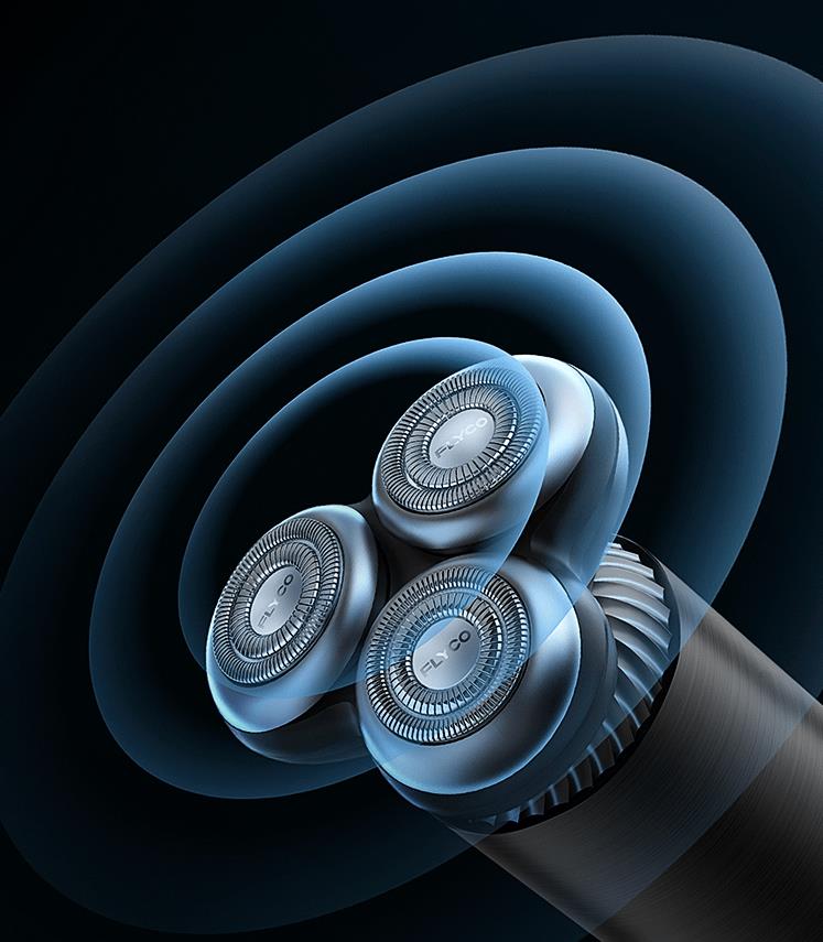 飞科是一家非常热衷广告营销的品牌,近年来频繁出现在荧幕上。旗下这款飞科(FLYCO)FS968采用的是黑色机身,看起来很深邃。其接近剃须刀的部位使用弧形的纹路过渡,上部就是三颗剃须刀呈现等边三角形分布,整体看起来科技感挺强烈的,颜值也颇高。