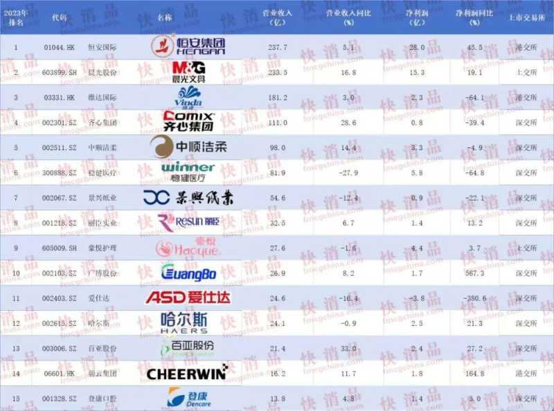 【独家】“2023年中国大快消上市公司之日用品TOP15”揭晓!