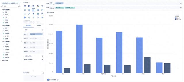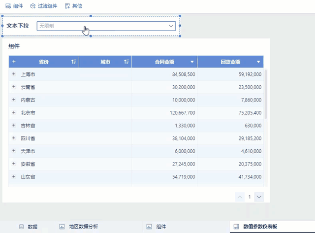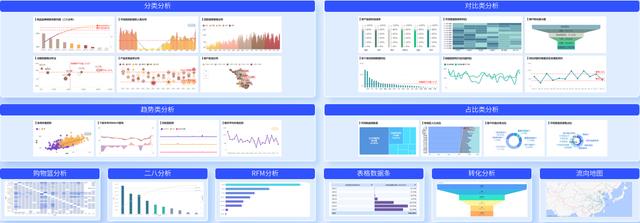 可视化效果丰富:支持柱形、折线、饼图、地图、漏斗、仪表盘、文本、热力点等多种展示形态,同一组件内多图表组合展示,还能进行自定义配置,展示效果清晰直观。