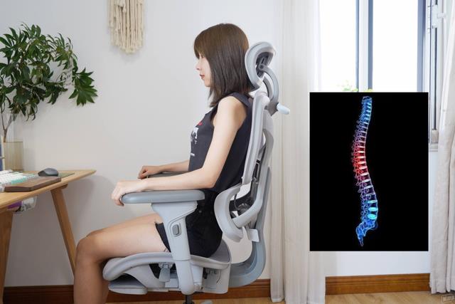 【产品亮点一】它采用空气滑翔悬架+双区浮翼腰托,后仰时腰部不会悬空,而是能随着坐姿自动贴合。椅背的三区轴联动可以根据身体压力自动滑动调整,坐下时,腰托能稳稳托住腰椎L4-L5节段;后仰150°午休时,腰托会同步上移并前推,腰骶部始终有包裹感,久坐也不容易累。